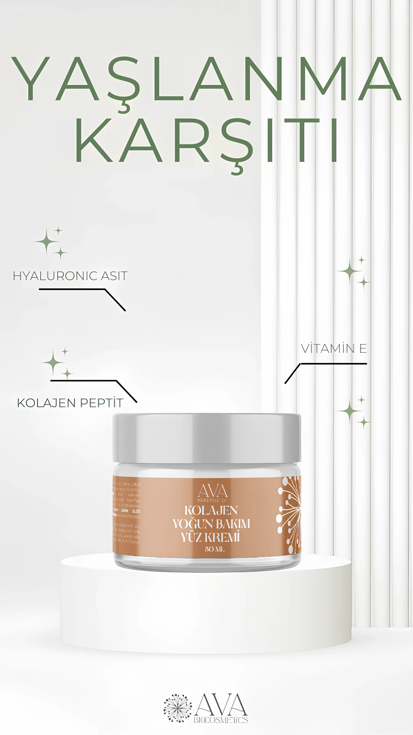 Kolajen Peptit + Hyaluronik Asit Doğal Yoğun Bakım Yüz Kremi